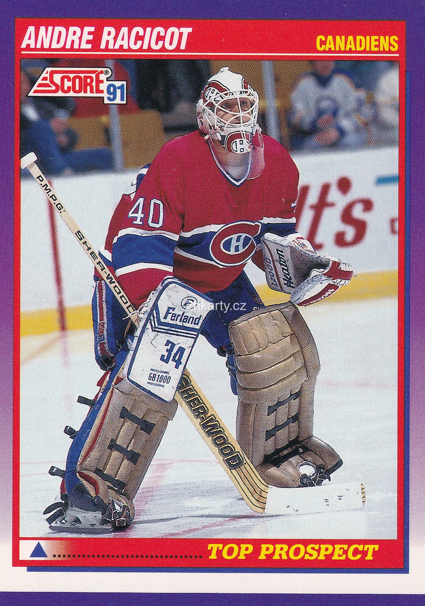 1991-92 Score - Andre Racicot (American)Skladem 1 ks7 Kč/ ks6 Kč bez DPH