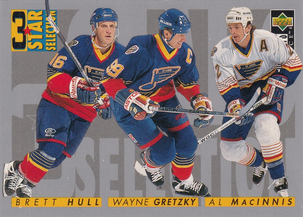 - 1996-97 UD Collectors Choice - Brett Hull, Wayne Gretzky, Al Macinnis - 3 Star Selection #329