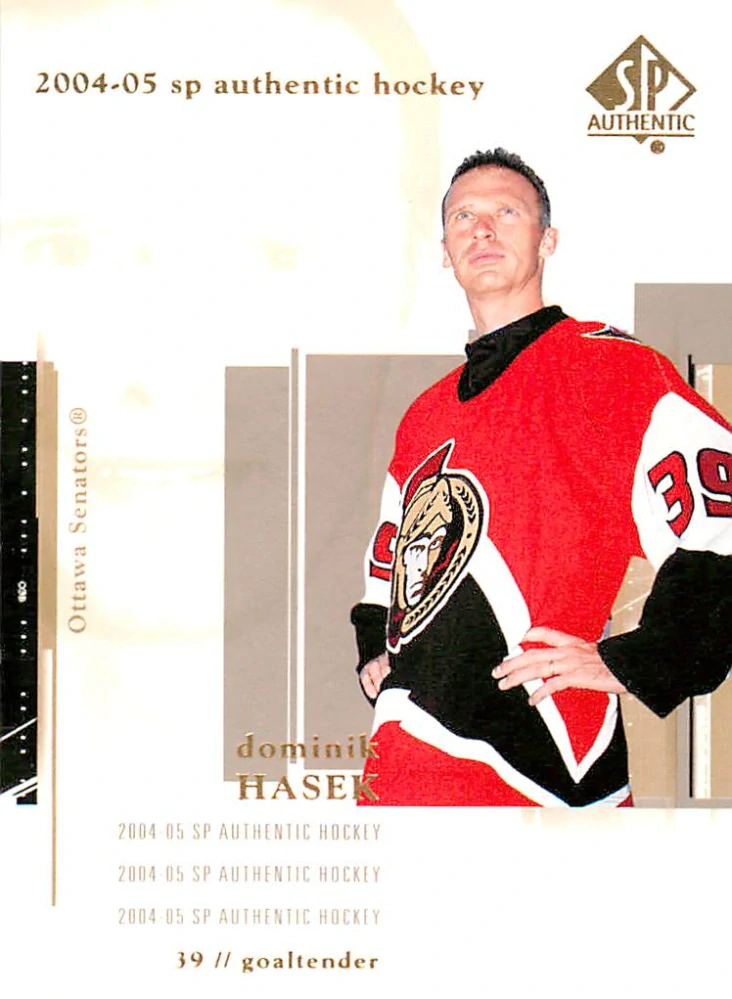 2004-05 UD SP Authentic - Dominik Hašek #64Skladem 1 ks39 Kč/ ks32 Kč bez DPH