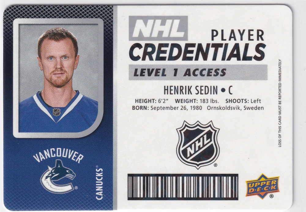 - 2017-18 UD MVP - Henrik Sedin - NHL Player Credentials - Level 1 Access