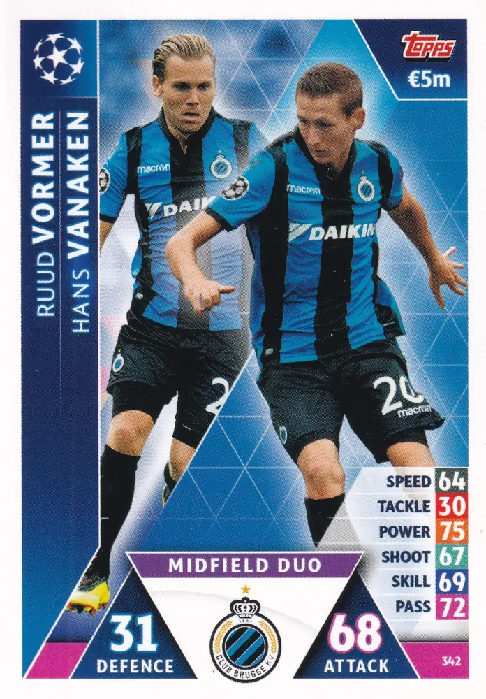 2018-19 Topps UEFA Champions Match Attax - Ruud Vormer, Hans Vanaken - Midfield DuoSkladem 1 ks4 Kč/ ks3 Kč bez DPH