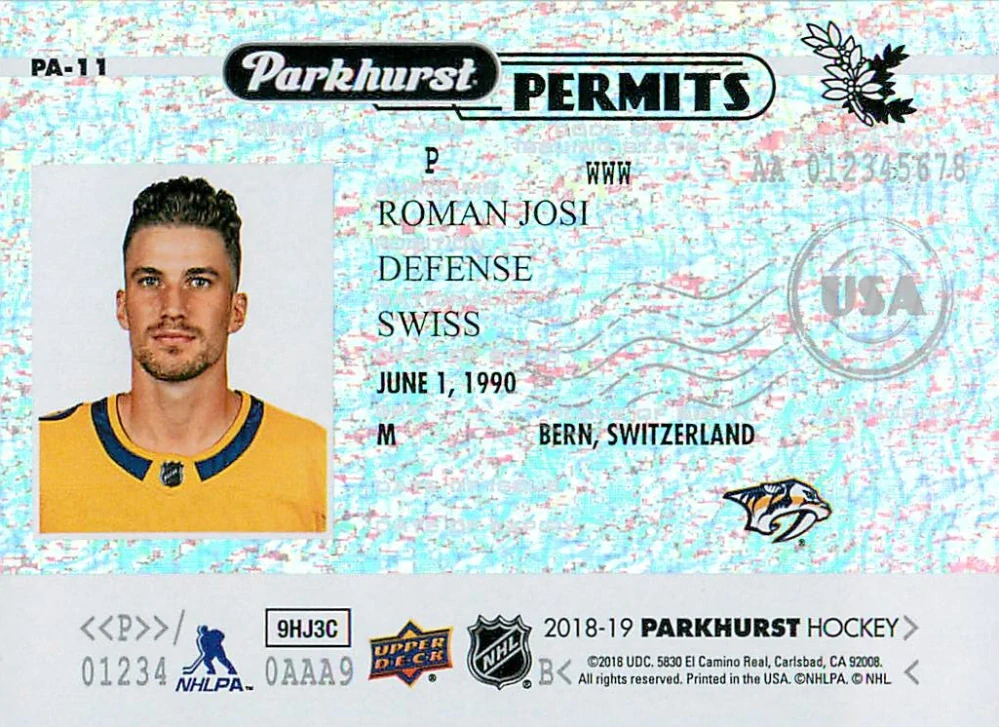 2018-19 UD Parkhurst - Roman Josi - Permits #PA-11