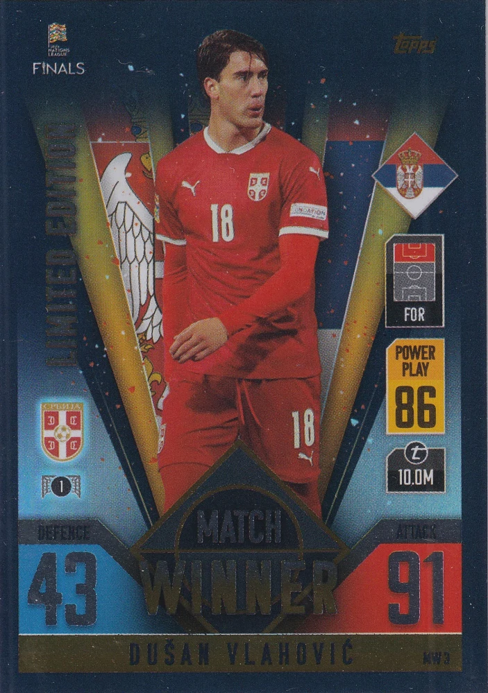 2022 Topps Match Attax 101 The Road To UEFA Nations League Finals - Dusan Vlahovic - Limited Edition - Match WinnerSkladem 1 ks29 Kč/ ks24 Kč bez DPH