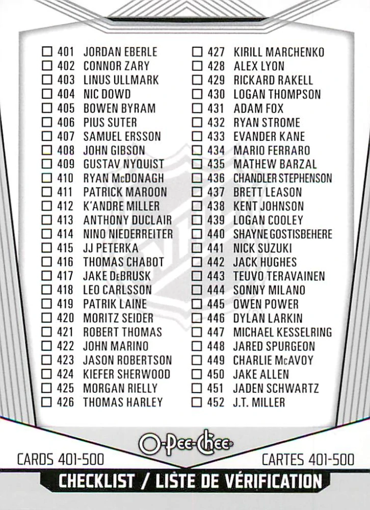 2024-25 UD O-Pee-Chee - Checklist 401-500 #500