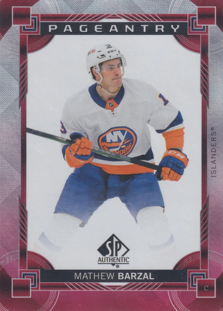2024-25 UD SP Authentic - Mathew Barzal - Pageantry Red #P-28Skladem 1 ks29 Kč/ ks24 Kč bez DPH